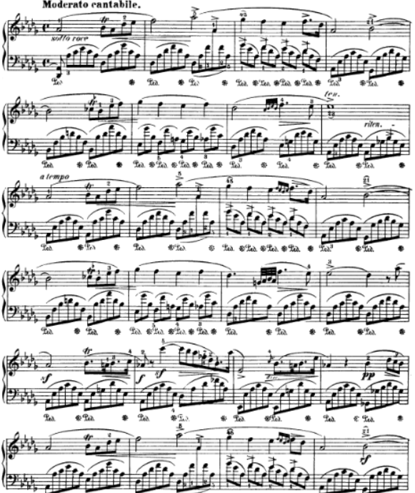I myself am currently learning Chopin’s Fantasy – Impromptu in C- sharp Minor (Op. 66). This piece was composed in 1834 and has a simple A – B – A – Coda structure. If one compares the musical score with Beethoven’s moonlight sonata for example, one can see, that Chopin put a lot more detail into pedalling as well as the dynamics.