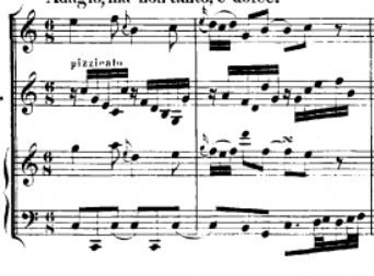 On the other hand, through the alteration of the voices, and additional textural features, such as the viola playing pizzicato, B1044 has, in my opinion, a more interesting character and is more entertaining to listen to. The mentioned sharp sounding cembalo seems to create a lighter atmosphere, which is especially enhanced during a passage when the flute plays staccato notes.