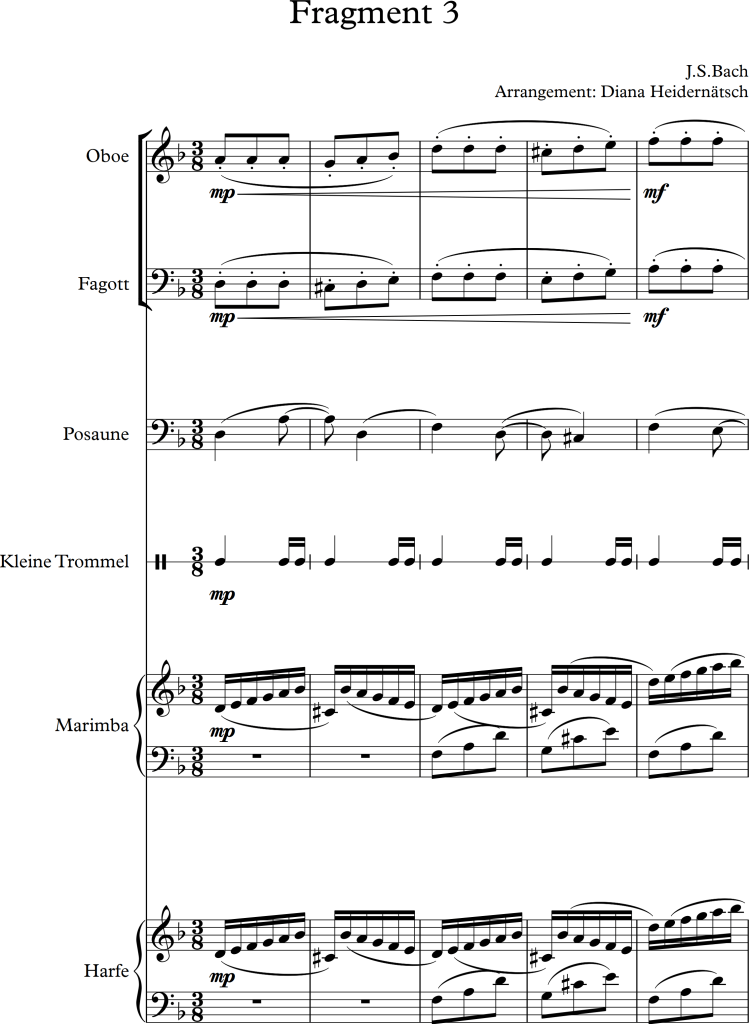 I was asked to orchestrate four short fragments for different types of instruments the results can be seen and heard below.