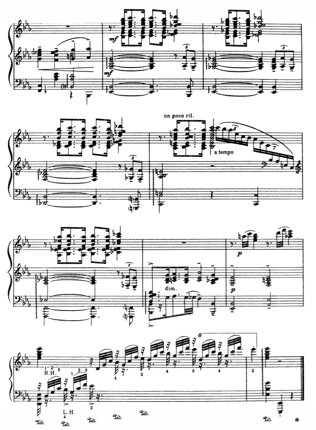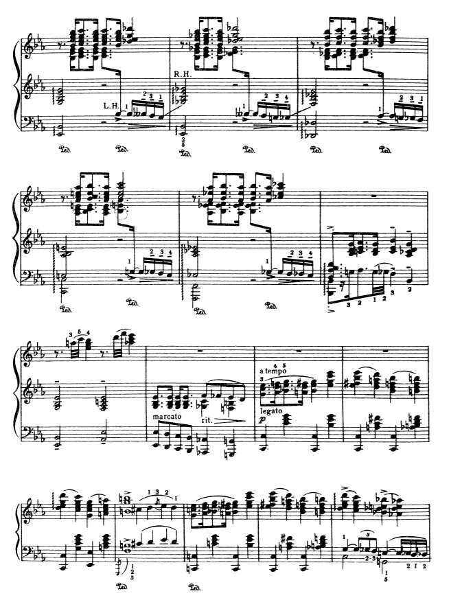 I found it very challenging to imagine which parts might be more difficult to play for other instruments than the piano, nonetheless, as I had the opportunity to distribute the voices from the piano score almost equally for all instruments and managed to include almost everything from it. Another hurdle to overcome would have been a “pulse” to the piece, without the use of a drum kit. I personally think, that this problem was already solved by Gerwshin himself, as the main theme consists of dotted notes, which rhythmically lead the piece forward.
