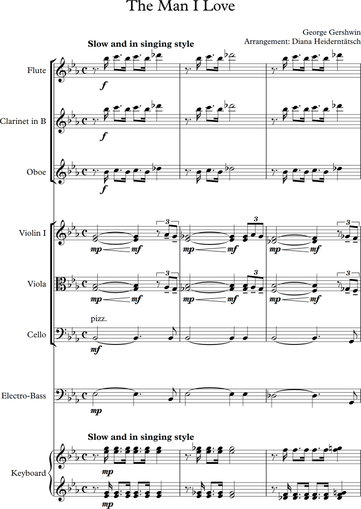 For this exercise, I was asked to arrange George Gershwin’s The Man I Love for an amateur orchestra, using the piano score below, arranged by the composer himself, as a basis.