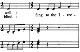 The transition from the second to the third verse, the piano accompaniment slightly changes, even though the chords stay the same. By playing an octave higher, the mood of the song also becomes slightly lighter. Instead of only using staccato notes, Williams used more fluently sounding arpeggios which where followed again by just one root – position chord.