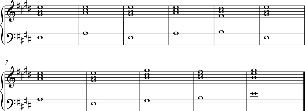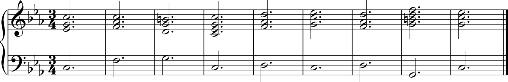 The first chord progression uses the chords I – IV – V – I – II – I – II – V – I