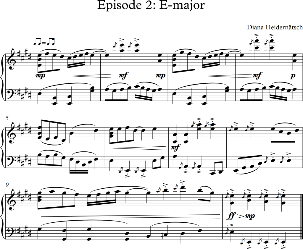The choice for the second piece wasn’t easy at all, I initially thought about using a piece suggested in the study folder. Nonetheless, at the end I decided to use a piece I’m currently learning for the piano. Having played it myself made it on one hand easier to extract the harmonic skeleton, on the other hand, it was much more difficult to put my own ideas into it, as I have heard and played the original version really often. Nonetheless, even though it was rather challenging, I am personally quite happy with the result.