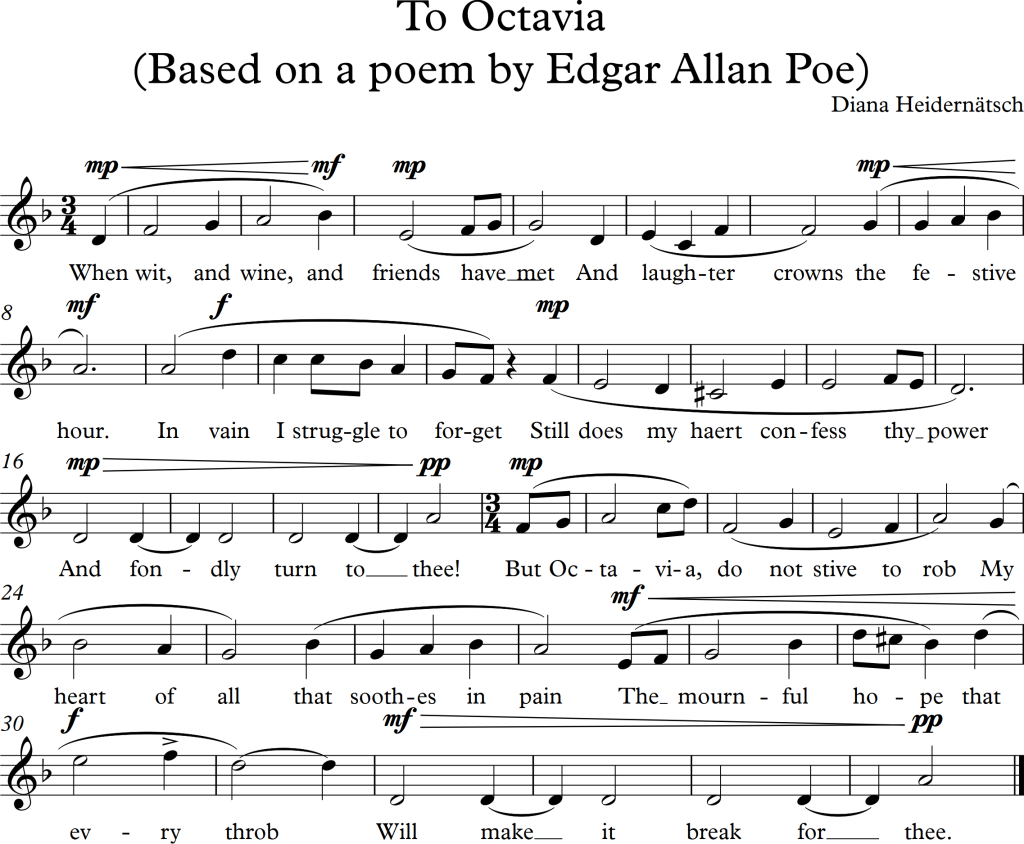 I was also asked to set a poem to music. As I recently started to enjoy some works from Edgar Allan Poe, I decided to use one of his poems. As suggested, I started of with the rhythm and added the melody afterwards.