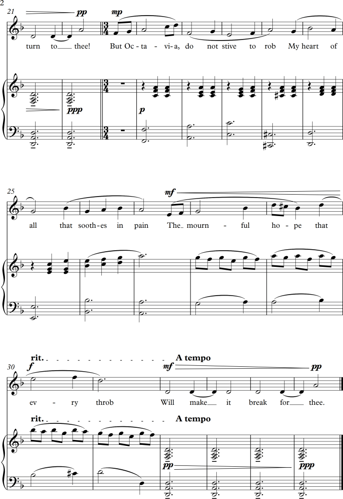 When the voice moves down at the second half of the stanza , the piano simply plays descending staccato notes at the same time instead of continuing with the fluid movement.