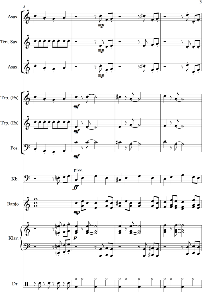 Reflection: Overall I really enjoyed writing this short piece, I was slightly surprised how effective the sound colour of the banjo was, as I initially didn’t think it would fit so well.