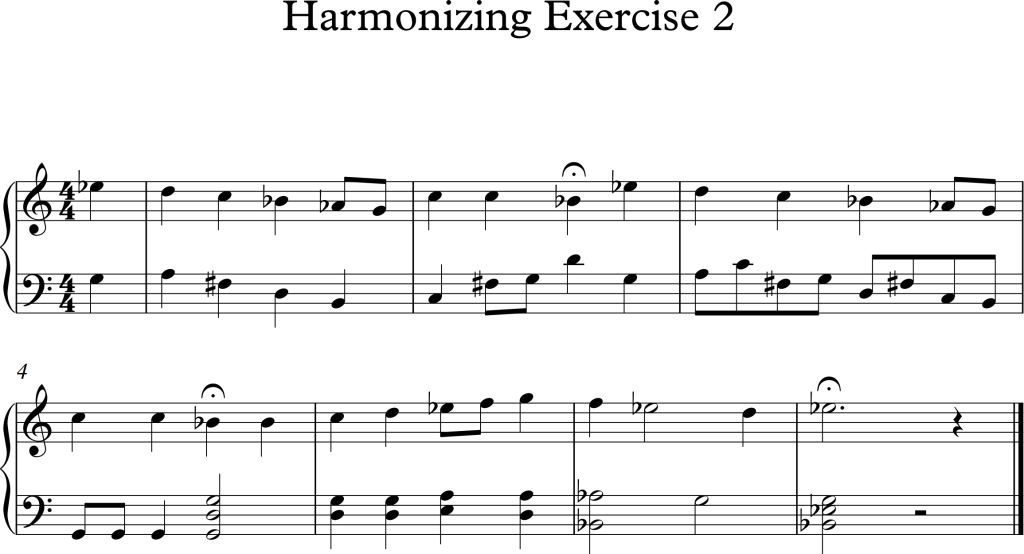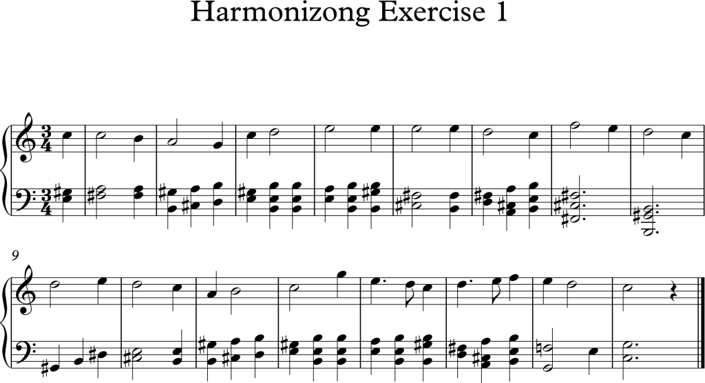 Here I was asked to harmonize two short chorale melodies, trying to avoid “normal” harmonies, except for the final cadence. Overall I found it really difficult, but having listened to the pieces above, I was able to create and develop some more independent harmonic ideas.