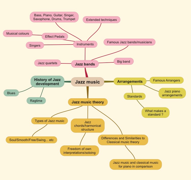 In conclusion, I noticed, that I often come back to the piano as a side subject, thus, I will try to reduce my subject to this instrument, but also want to focus on the music theory in comparison between jazz music and music from the classical era.