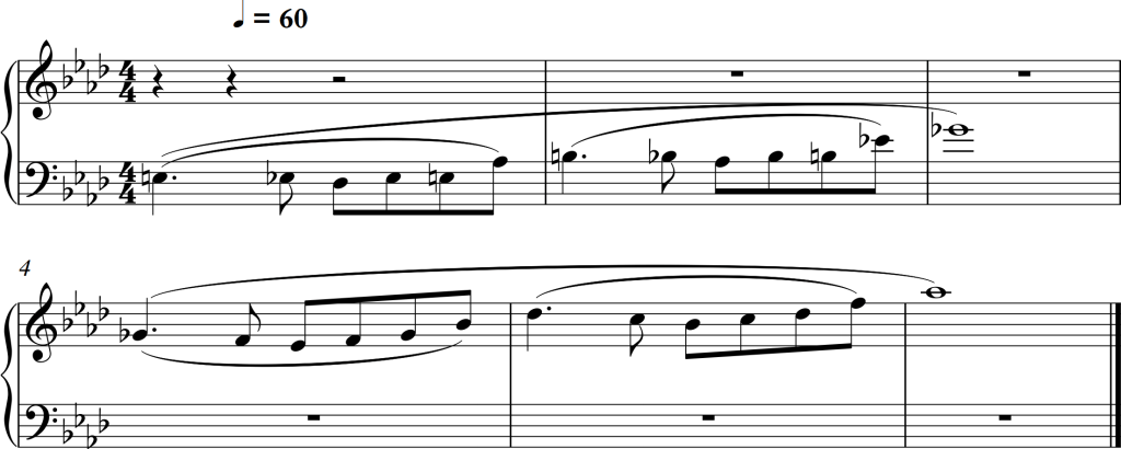 After returning home from a long military operation during the second world war, the crew of a submarine is surprised by and airstrike, which kills a part of the crew. Even though I mainly focused on a graphical independent notation, I didn’t want to leave behind the well known theme of the film and therefore included parts of it within my notation as well. The theme can be heard and seen below, firstly as the original and afterwards as a simplistic score.